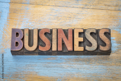 business word in wood type