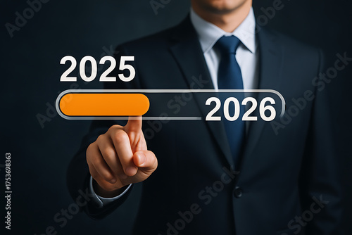 Businessman Advancing Progress Bar from 2025 to 2026 for Strategic Planning