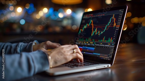 Businessman analyzing a chart displaying gold and cryptocurrency price trends on a digital tablet