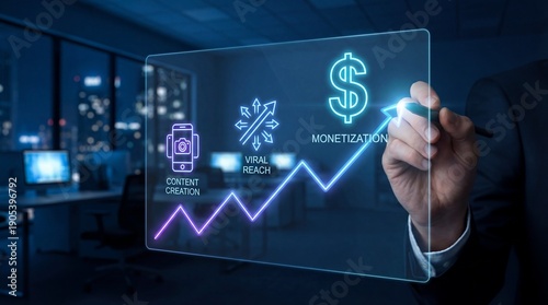 Businessman analyzing digital marketing strategy with monetization graph