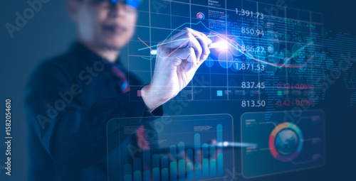 Businessman Analyzing Financial Data and Business Intelligence Dashboard