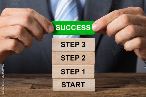 Businessman Building Success Concept With Wooden Blocks