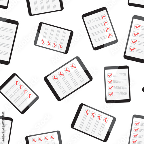 Businessman checklist with tablet pc seamless pattern background. Business flat vector illustration. Checklist, task list symbol pattern.