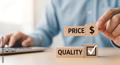 Businessman choosing between price and quality, symbolizing a business decision or strategy