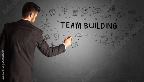businessman drawing a creative idea sketch