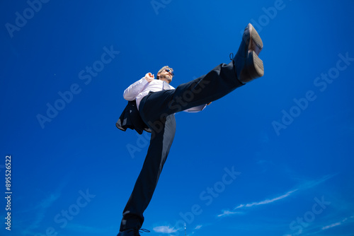 Businessman go step on sky. Next Steps. Business Ambitions concept. Goal business success strategy. Creative growth development. Growth business success process. Steps Forward. Step by step.