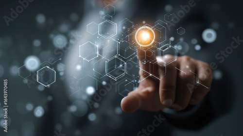 businessman hand working with modern technology and digital layer effect as business strategy concept no logos no brands ar 169