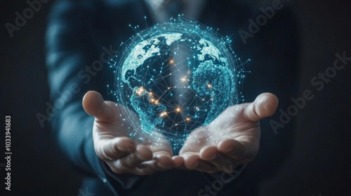 Businessman Holding Digital World