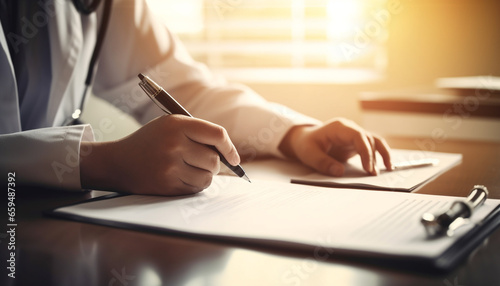 Businessman holding pen, working on document at office desk generated by AI