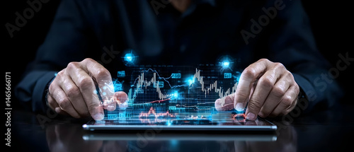 Businessman Interacting With Digital Graphs On Tablet