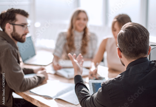 businessman looking at the handshake of business partners