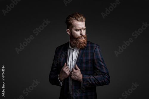 Businessman man in menswear suit jacket formal business style isolated on grey