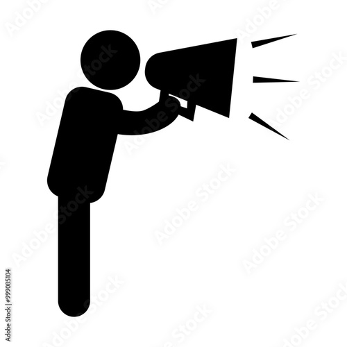 businessman people man shouting through a megaphone logo icon design. monochrome black icon.