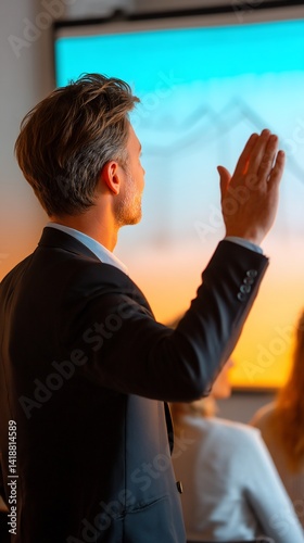 Businessman raising hand during presentation