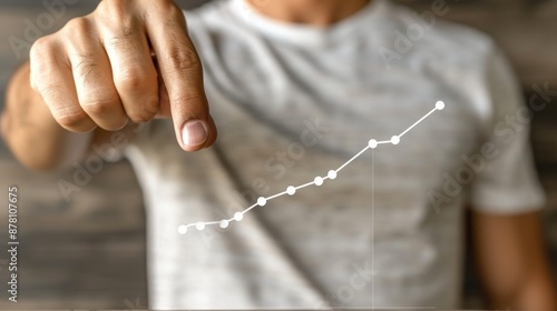 Businessman s hand illustrates sales growth chart on virtual screen for presentation