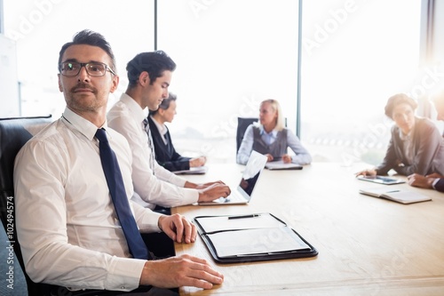 Businessman smiling during a meeting