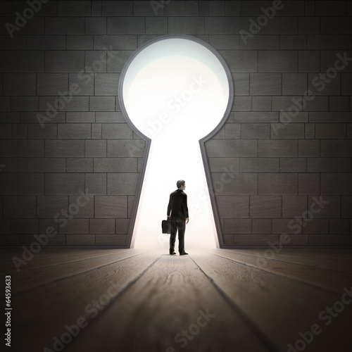 Businessman standing in a wall opening
