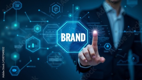 Businessman Touching Brand Word on Digital Display