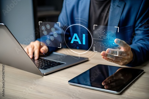 "Businessman Using Artificial Intelligence Technology on Tablet"