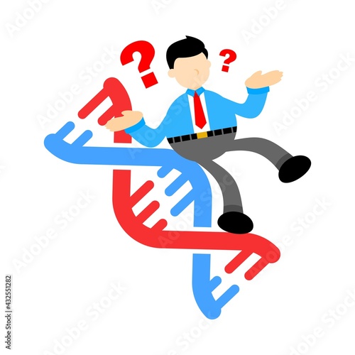 businessman worker research genetic heredity double helix structure part cartoon doodle flat design style vector illustration