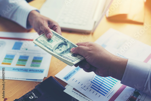 Businessmen are paying compensation to partners. or Businessmen are receiving dividends from investments.