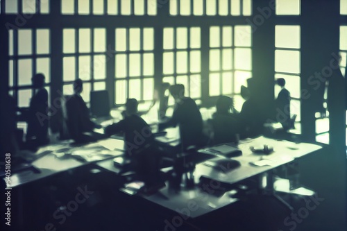 Businessmen blur in the workplace or work space of table work in office with computer or shallow depth of focus of abstract background.
