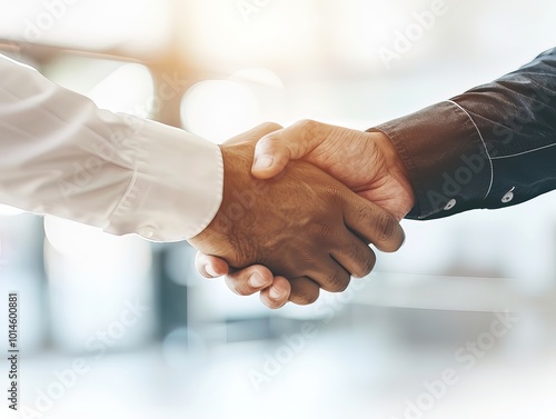 Businessmen shaking hands in close-up, symbolizing successful energy deal, with energy infrastructure in the background.