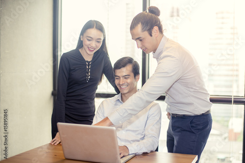 Businessteam working with laptop, business teamwork concept, 20-30 year old.