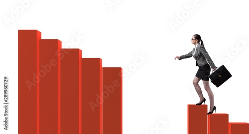 Businesswoman climbing bar chart in economic recovery concept