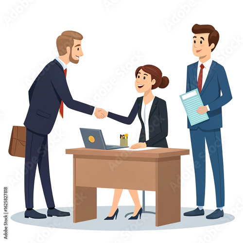 Businesswoman shaking hands man job interview office scene isolated on a transparent background