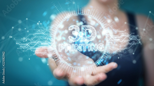 Businesswoman using 3D printing digital hologram 3D rendering