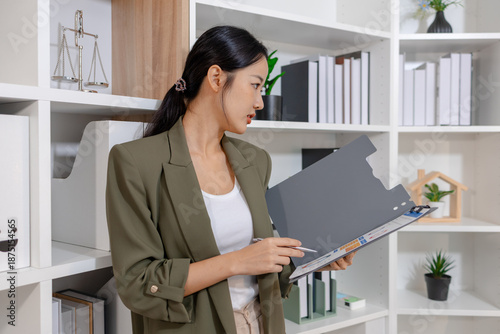 Businesswoman working independently in an office setting, focusing on planning and daily responsibilities, showing commitment, professionalism, and a balanced working lifestyle.