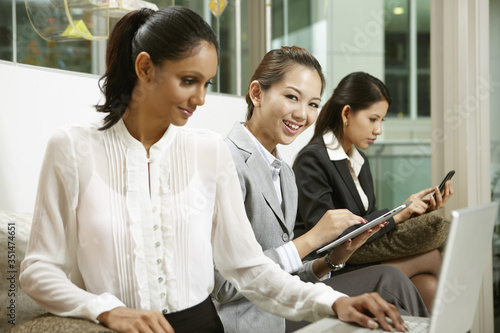 Businesswomen using electronic devices