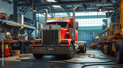 Busy Truck Workshop Scene