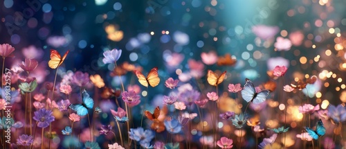 Butterflies and flowers dance in a colorful garden nature photography vibrant environment close-up view