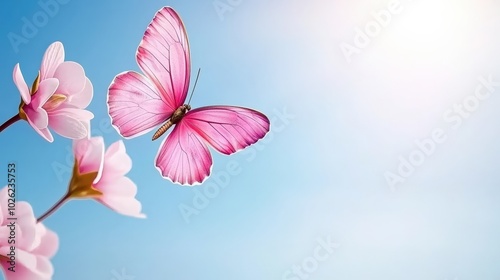 Butterflies with flower petal wings, joyful celebration of New Year 2025, 3D illustration, selective focus on foreground, copy space for text, ultra HD,
