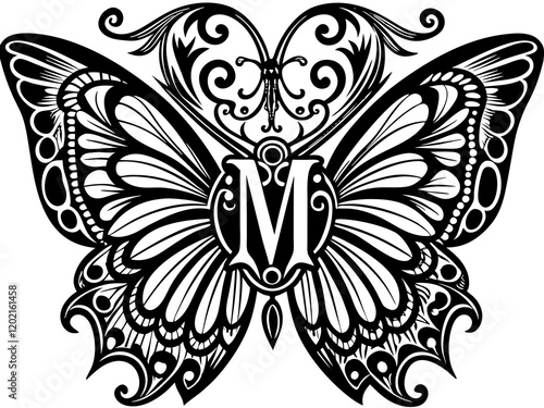 Butterfly monogram alphabet SVG bundle with floral and intricate designs