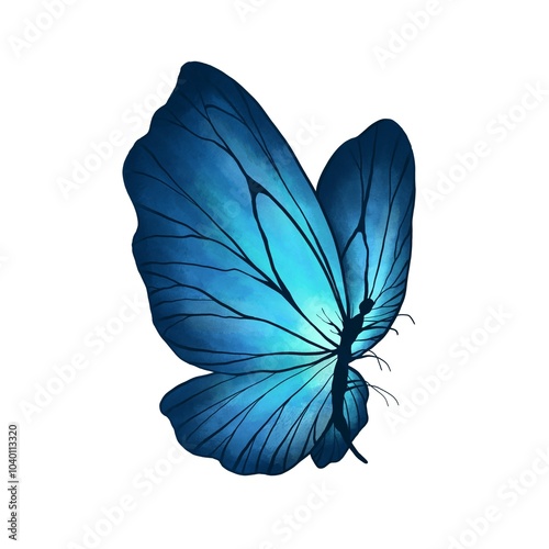 Butterfly Watercolor Hand Drawn Illustration. Illustration Isolated on White Background for Design, Print or Background. Blue Butterfly