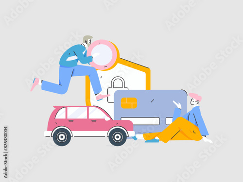Buy insurance for car flat character vector concept operation illustration