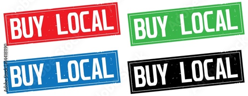 BUY LOCAL text, on rectangle stamp sign.