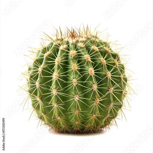 Cactus isolated on white background. Closeup of a cactus with long sharp spines.