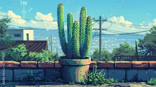 Cactus on a Wall with a City View.