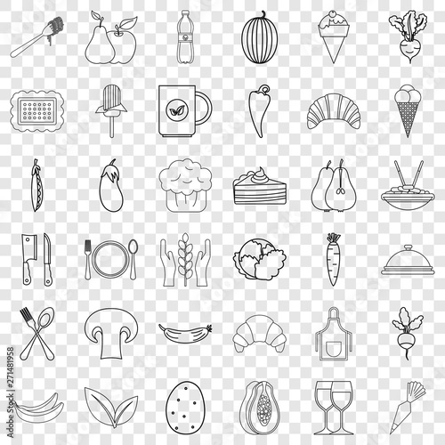 Cafe icons set. Outline style of 36 cafe vector icons for web for any design