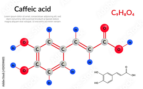 Caffeic acid molecular structure formula, ball-and-stick model, suitable for education or chemistry science content. Vector illustration