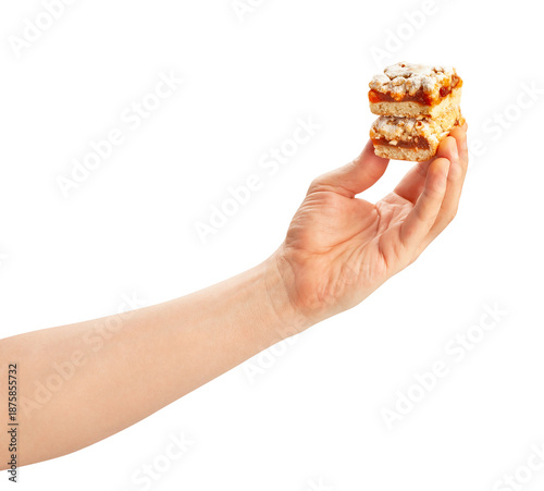 cake in hand path isolated on white