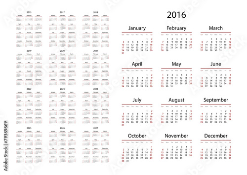 Calendar 2015, 2016, 2017, 2018, 2019, 2020, 2021, 2022, 2023,