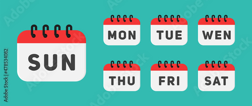 calendar flat icon set - vector illustration . week, weekly, day, days, event, schedule, daily, everyday, reminder, timetable, flat icons .
