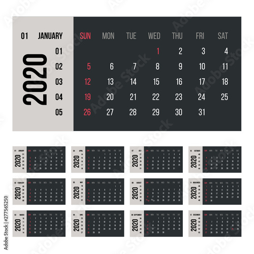 Calendar for 2020 year vector illustration