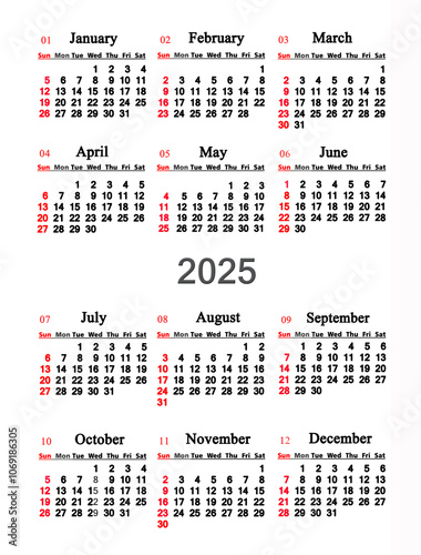 calendar for 2025 year. Daily organizer. Business organizer. 2025 calendar