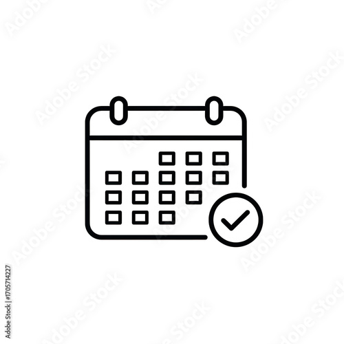 Calendar icon with checkmark completed schedule isolated on transparent background
